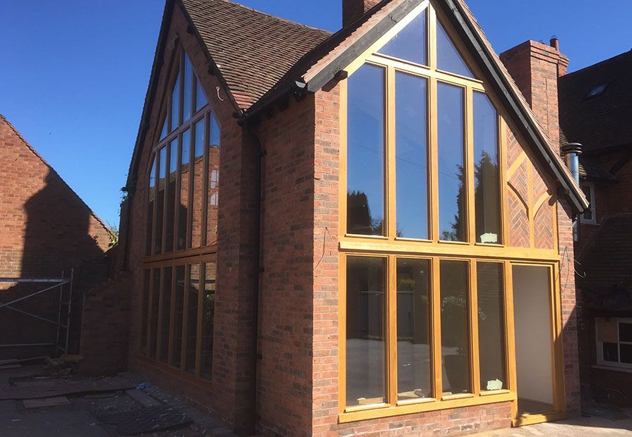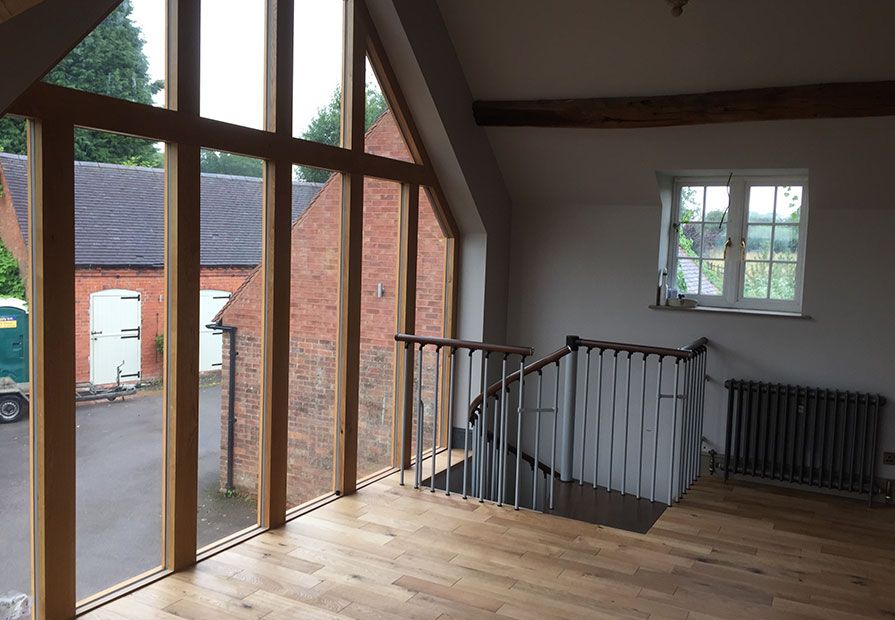 This project was for a Grade II listed building situated in a rural location. The main feature to this extension project was the construction of three 4-metre high oak gable frames, all handmade in our workshop. As a Listed Building, we had to use reclaimed building materials and the brickwork had to be herringbone.