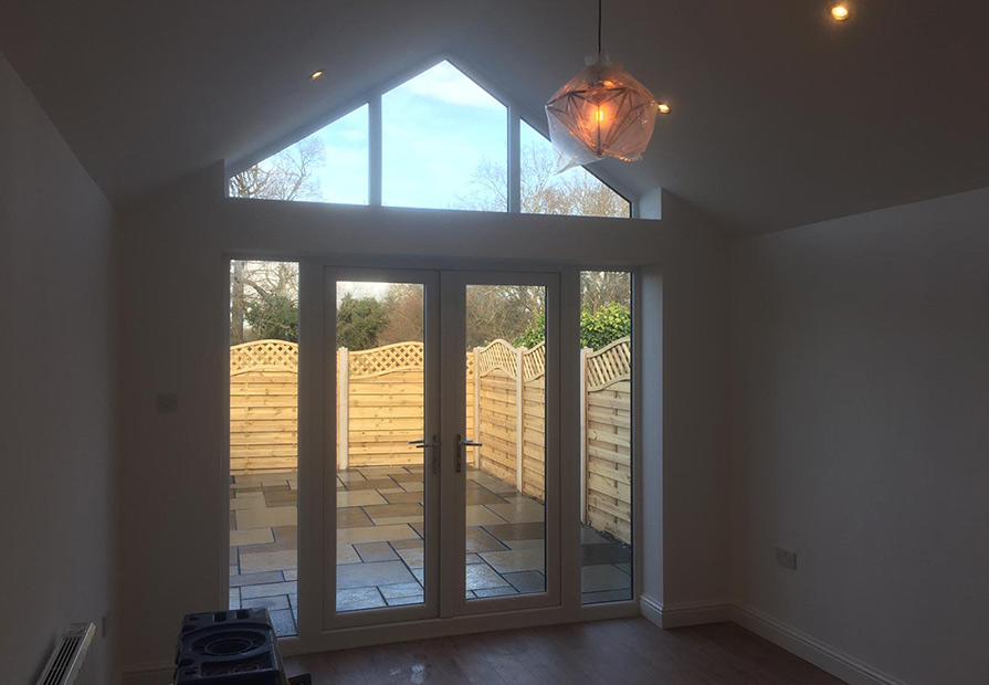This small addition to the rear of the property allowed us to install a steel beam and open up the rear of the house to create a new family room with a contemporary fitted kitchen. Installing an atrium window and velux roof lights gave a light spacious feel to the new room.
